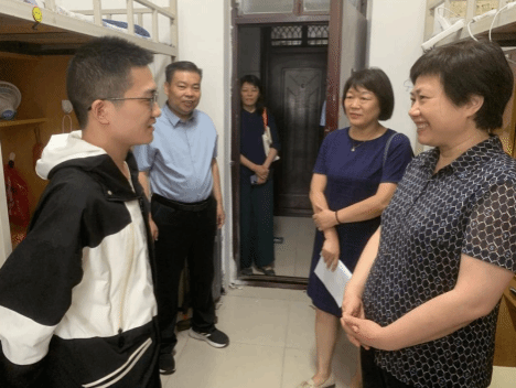 本网讯(文/图 李旭宁)为深入了解毕业生实际,切实做好学校毕业服务工作,2024年6月6日,校党委书记李小芳、党委副书记朱建光带领党委办公室、学工部、研工部等部门负责同志,深入学生宿舍看望慰问2024届毕业生,为大家送去学校的深切关怀和美好祝愿,并与毕业生辅导员亲切座谈。