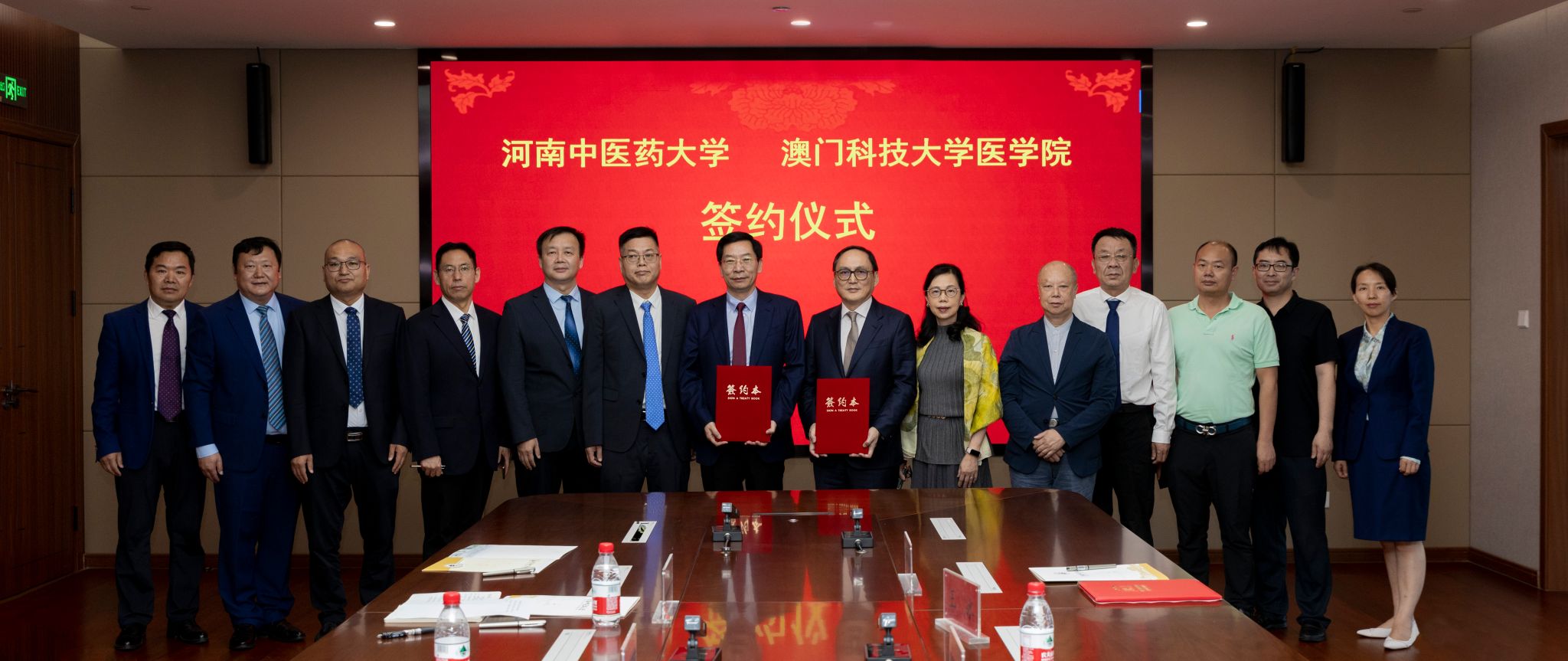 本网讯(文/李敬平 图/郭寅虎)2024年6月27日,澳门科技大学医学院院长霍文逊一行来校访问。校长王耀献代表学校与澳门科技大学医学院签署合作协议,并为霍文逊颁发“客座教授”聘书。港澳台办公室、社会合作办公室,第二附属医院等部门单位负责同志参加会议。会议由港澳台办公室主任朱剑飞主持。