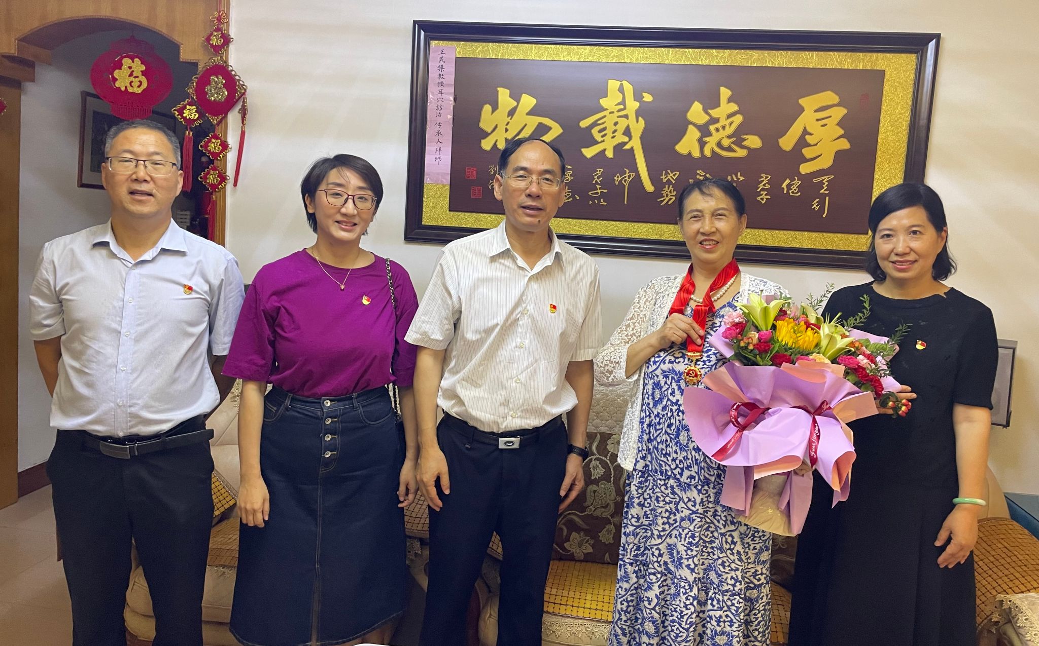 本网讯(文/刘欲晓 张筱伟 图/苗雨 沈秋红)五十载峥嵘岁月,五十载初心如磐。为庆祝中国共产党成立103周年,进一步弘扬伟大建党精神,传递组织关怀与温暖,2024年7月1日,校党委书记李小芳,党委副书记、工会主席张加民,党委副书记朱建光分别带队走访慰问“光荣在党50年”老党员,为他们颁发纪念章,向他们致以崇高的敬意和诚挚的问候。校党委组织部、离退休职工工作处等部门同志参加活动。