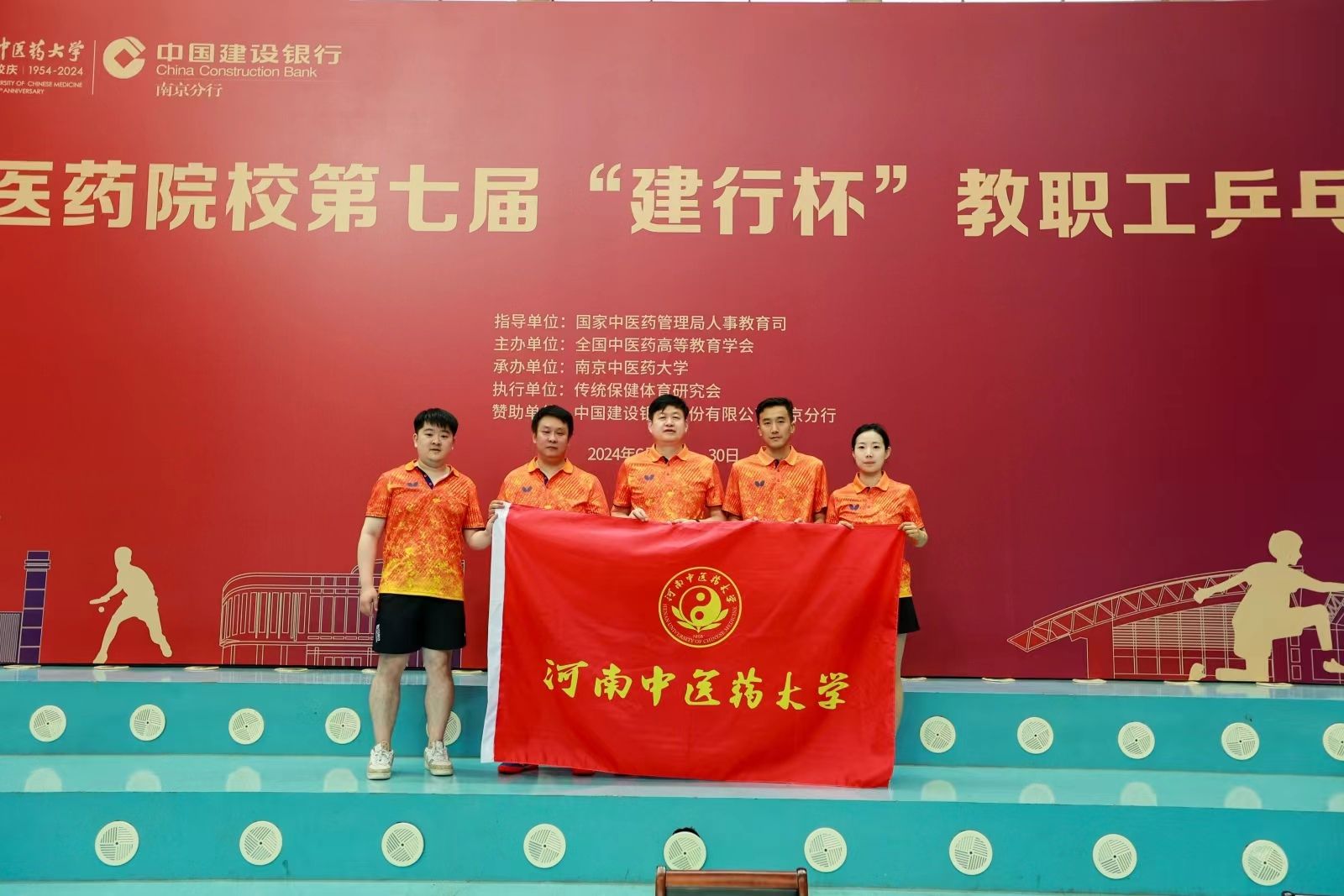 本网讯(文/吴晓萍 图/南京中医药大学)2024年6月28日至30日,由全国中医药高等教育协会主办、南京中医药大学承办的第七届全国中医药院校教职工乒乓球比赛在南京中医药大学仙林校区体育中心举行。来自全国中医药院校的25支代表队共聚金陵,以赛促学、以赛促进、互学互鉴、共享球赛魅力。米兰(中国)党委副书记、工会主席张加民领队,校党委委员、副校长彭新等5位选手参赛。经过两天激烈鏖战,米兰(中国)代表队斩获第五名的好成绩。