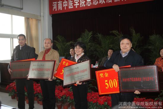 获得省委高校工委思想政治工作特色品牌奖和科研成果将的人员在领奖