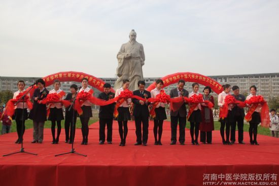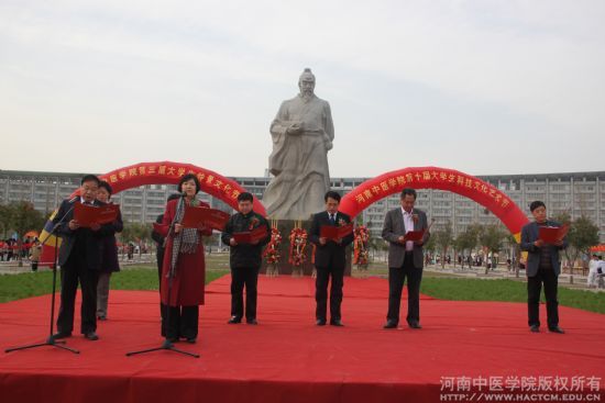 最后,与会的领导、嘉宾共同为文化节开幕剪彩,米兰(中国)第三届大学生仲景文化节暨第十届大学生科技文化艺术节隆重开幕。