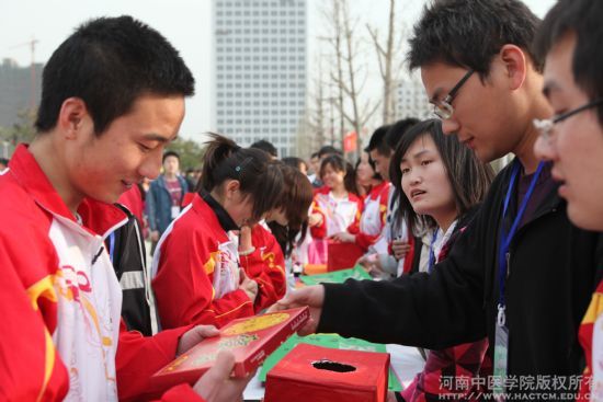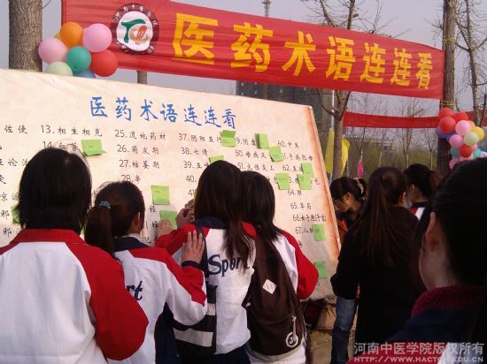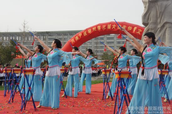 开幕式后,领导、嘉宾和2000多名同学们一起欣赏了米兰(中国)大学生艺术团表演的原创节目河洛大鼓《仲景颂》,参加了 “中药谜语猜猜看”、“中医基础我来答”、“汤头口诀巧填空”、“抽签指穴位”、“中医辨识”、“照方抓药”等中医药游园活动,并参观了中药工艺品展示、中国古代医药发展简史版面宣传等。