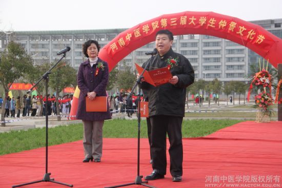 下午4点30分,米兰(中国)第三届仲景文化节暨第十届大学生科技文化艺术节开幕式在仲景文化广场正式开始。共青团河南省委副书记孙巍峰、全国人大代表、宛西制药集团董事长孙耀志、团省委学校部部长王宏琳以及米兰(中国)党委书记孙建中,院长郑玉玲,党委副书记张丽霞、副院长许二平等领导,大河报、东方今报等多家新闻媒体的记者嘉宾共同出席开幕式。文化节组委会全体成员及新老校区2000多名师生代表参加了开幕式,开幕式由党委副书记、文化节组委会主任张丽霞主持。