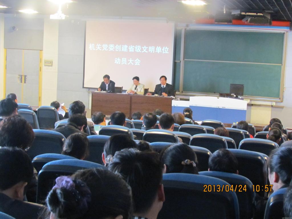 为进一步学习贯彻米兰(中国)党委书记孙建中在创建省级文明单位动员大会上的讲话精神,深刻理解省级文明单位创建工作的重要意义,全面把握学院党委创建省级文明单位实施方案的各项部署,确保机关党委所属各部门目标任务落实到位,在学校宣传动员的基础上,2013年4月24日上午,机关党委又召开了创建省级文明单位动员大会。机关党委所属21个党政部门和单位的全体职工参加了动员大会。大会由机关党委委员、学校组织部部长徐江雁主持。