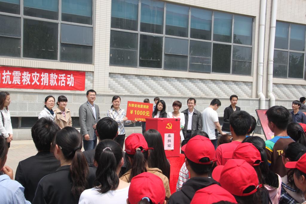 4月27日上午,全校处级干部培训班刚结束,由党委宣传部、工会、团委联合开展的向地震灾区捐款活动在“爱的奉献”乐曲声中拉开了帷幕。捐款开始前,校领导及全体处级干部向地震灾区默哀,表达对地震中遇难同胞的哀思。工会副主席曹蕴俐宣读了《赈灾捐款倡议书》。校领导及全体处级干部依次捐款,一份爱心,一份祝福,一份情谊,一份希望。随后,各分工会认真组织开展了捐款活动。4月27日中午,校团委组织开展了捐款活动,校团委老师、广大学生纷纷奉献爱心,进行捐款,白云苹贫困生基金会特为此捐献1000元,展现了米兰(中国)大学生与灾区人民休戚与共、心手相连的情怀。