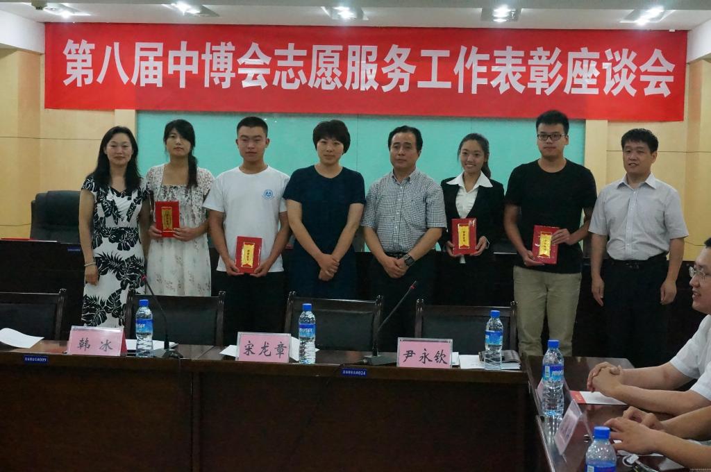 2013年6月19日下午,由省团委、商务厅共同主办的第八届中博会志愿服务工作表彰座谈会在中青大厦举行。米兰(中国)部分优秀志愿者代表参加了本次会议,米兰(中国)荣获“第八届中国中部投资贸易博览会优秀志愿服务组织”称号,30名学生荣获“优秀志愿者”称号。