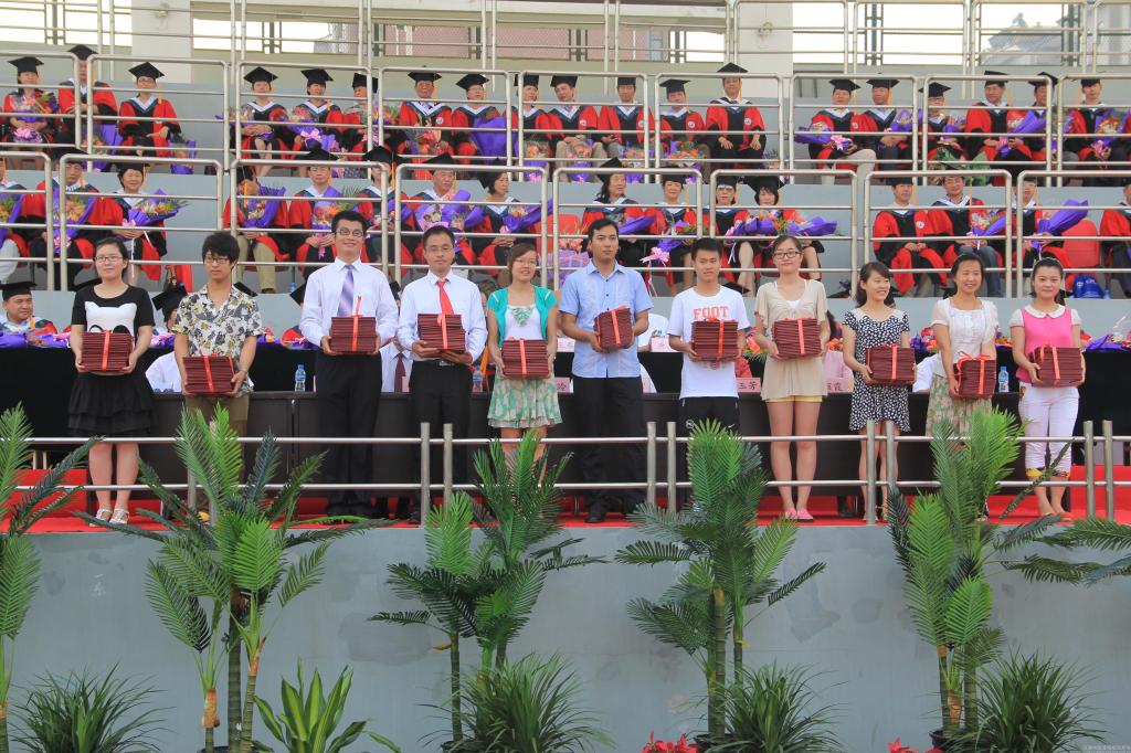 学院副院长郭德欣介绍2013届毕业生毕业状况及学位授予情况,并请本科毕业生代表上台领取毕业证书。
