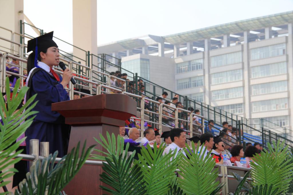研究生毕业生代表、药学院曹琴同学代表研究生毕业生发言,表示会带着母校老师的期望与祝福,坚定信念,迈向新的征程,脚踏实地走好每一步路,做一个善良、正直和勇于为梦想拼搏的人。