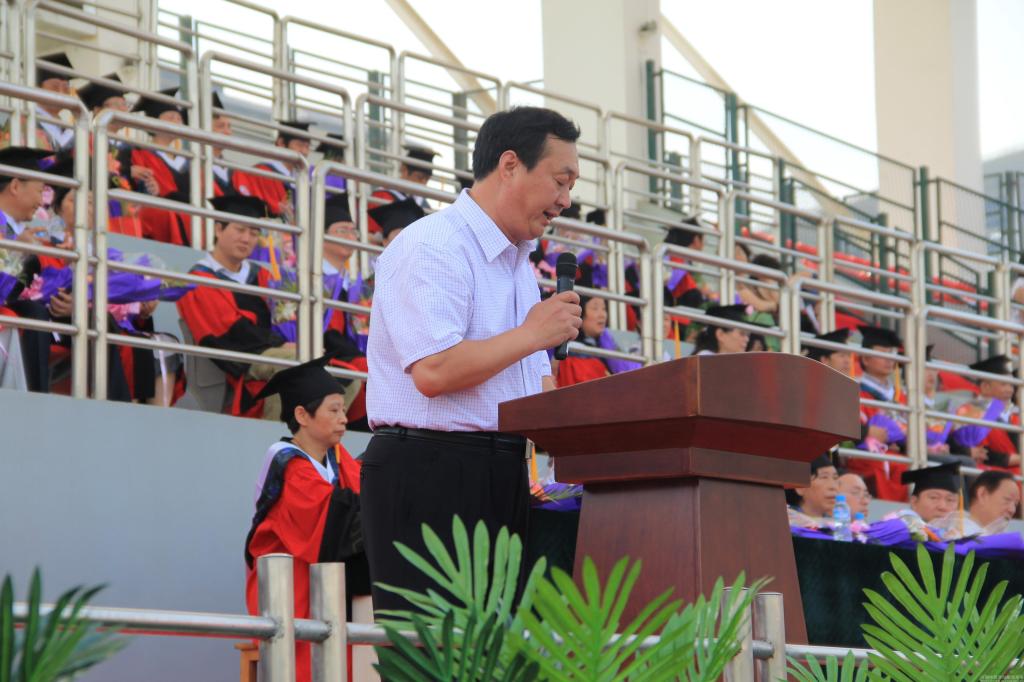 毕业生家长代表、第二临床医学院韩磊同学的父亲韩军先生代表家长发言。他说,我们家长从孩子的捷报里见证了河南中医学院的快速发展:省部共建、更名大学、博士授权单位建设,等等,和孩子一起高兴的同时,也深刻体会到学校领导、教师的辛勤汗水。希望毕业生永远不要忘记恩师,永远不要忘记母校,永远不要忘记奋斗。