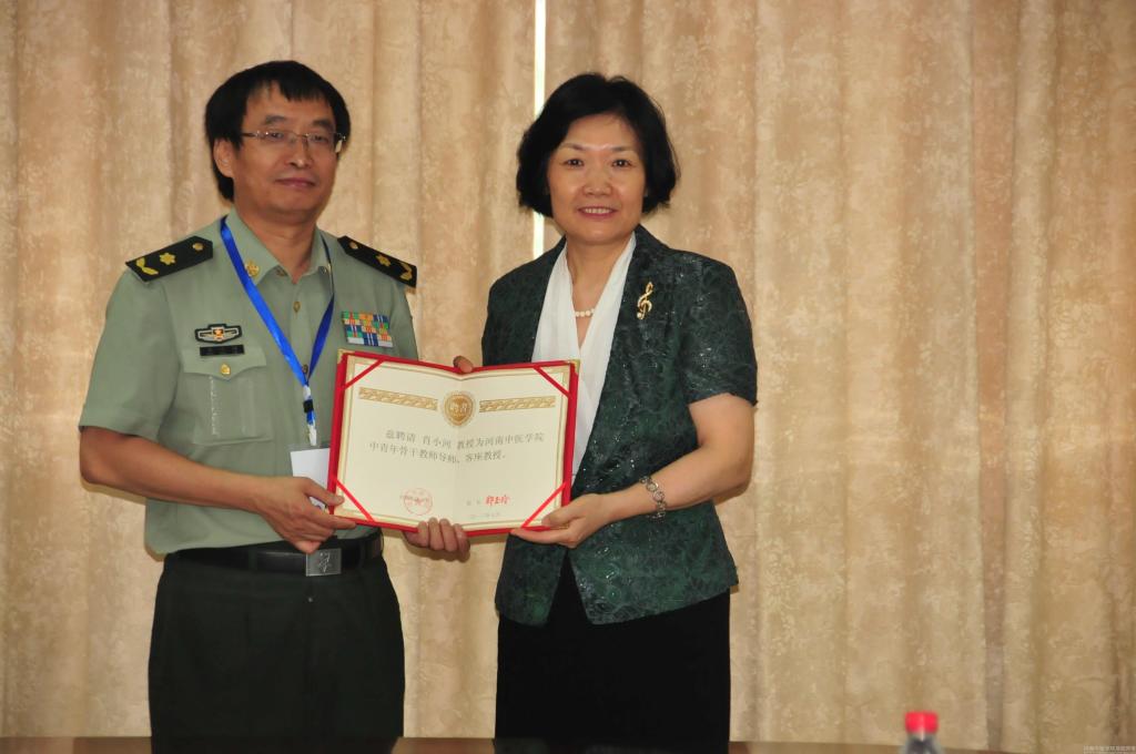 校长郑玉玲教授为肖小河教授颁发了聘书,王霞博士向肖小河教授行拜师礼并献鲜花。肖小河教授在仪式上发表了热情洋溢的讲话,对河南中医学院的聘任表示感谢,表示将尽心尽责承担起指导青年教师的责任。