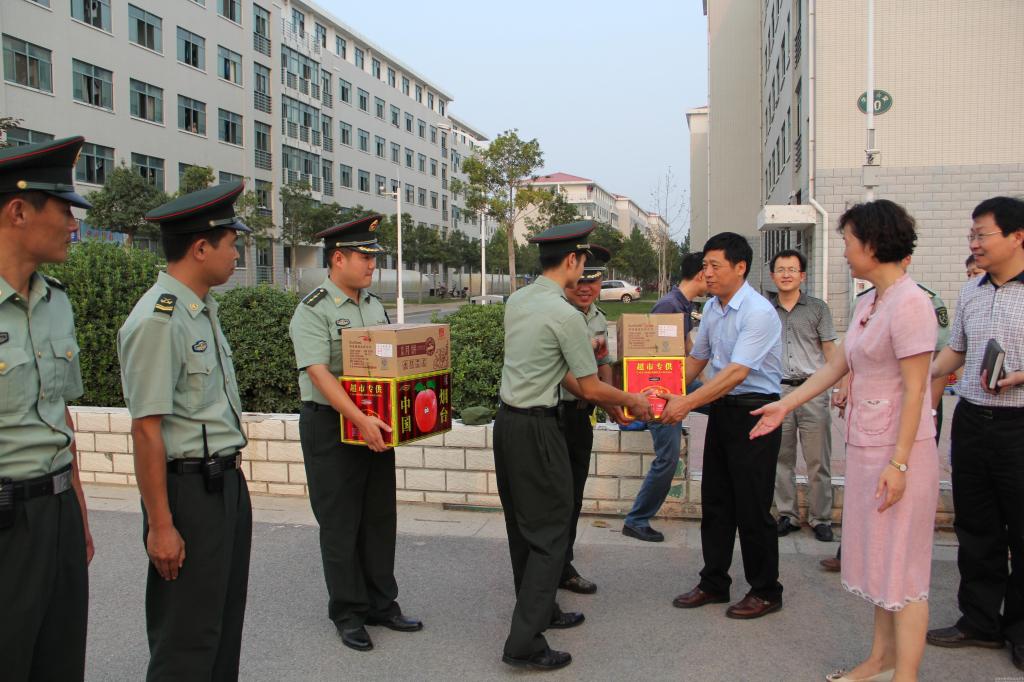 2013年9月17日下午,党委副书记张丽霞、副院长许二平在学工部、学生处、武装保卫部、团委负责同志的陪同下,看望慰问负责米兰(中国)2013级学生军训的部队教官。
