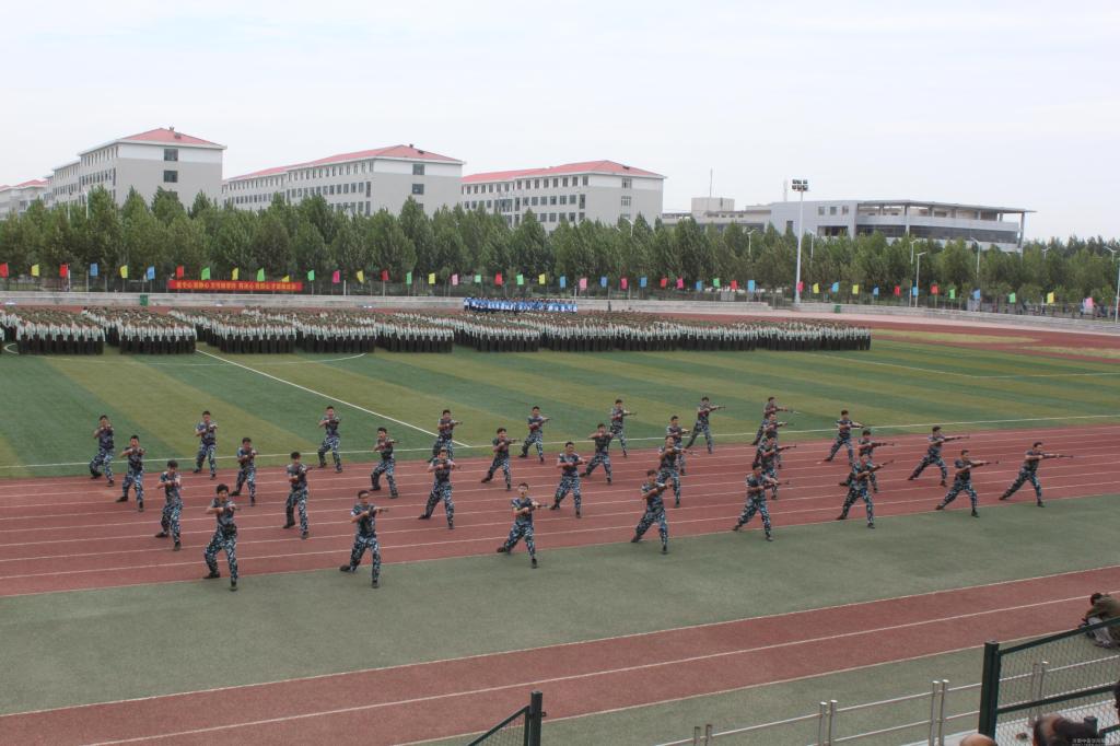 副院长付强宣读军训表彰决定,学校领导和部队首长向军训先进集体颁奖。军训部队首长冯跃上尉代表军训教官高度赞扬了新生所展现出的新一代青年学子的精神风貌,希望同学们继续保持,为母校争光。