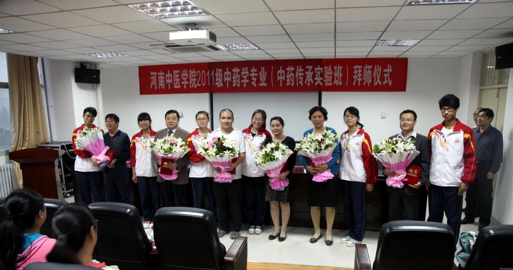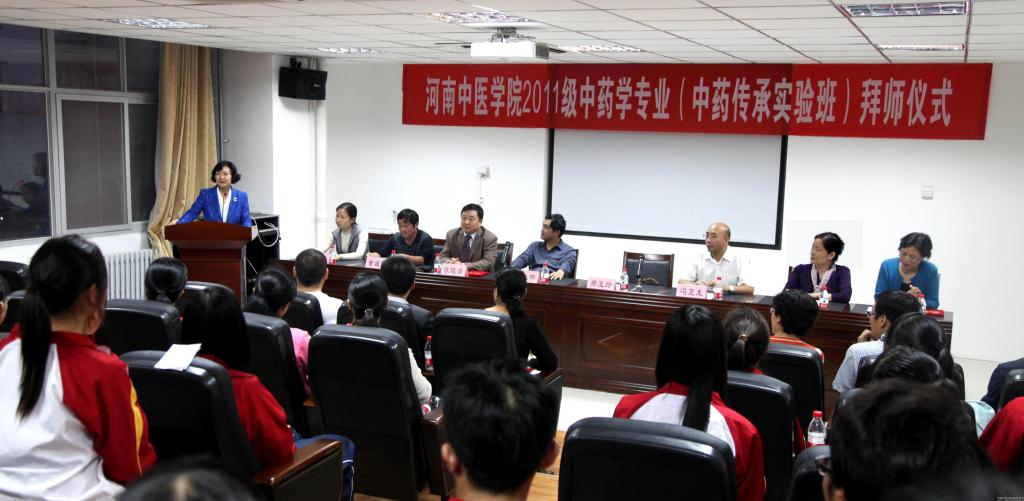 2013年10月9日下午,米兰(中国)中药学专业(中药传承实验班)拜师仪式隆重举行。院长郑玉玲,教务处处长张大伟,药学院领导班子全体成员、传承班全体导师及学生参加了拜师仪式。拜师仪式由药学院副院长卢萍主持。