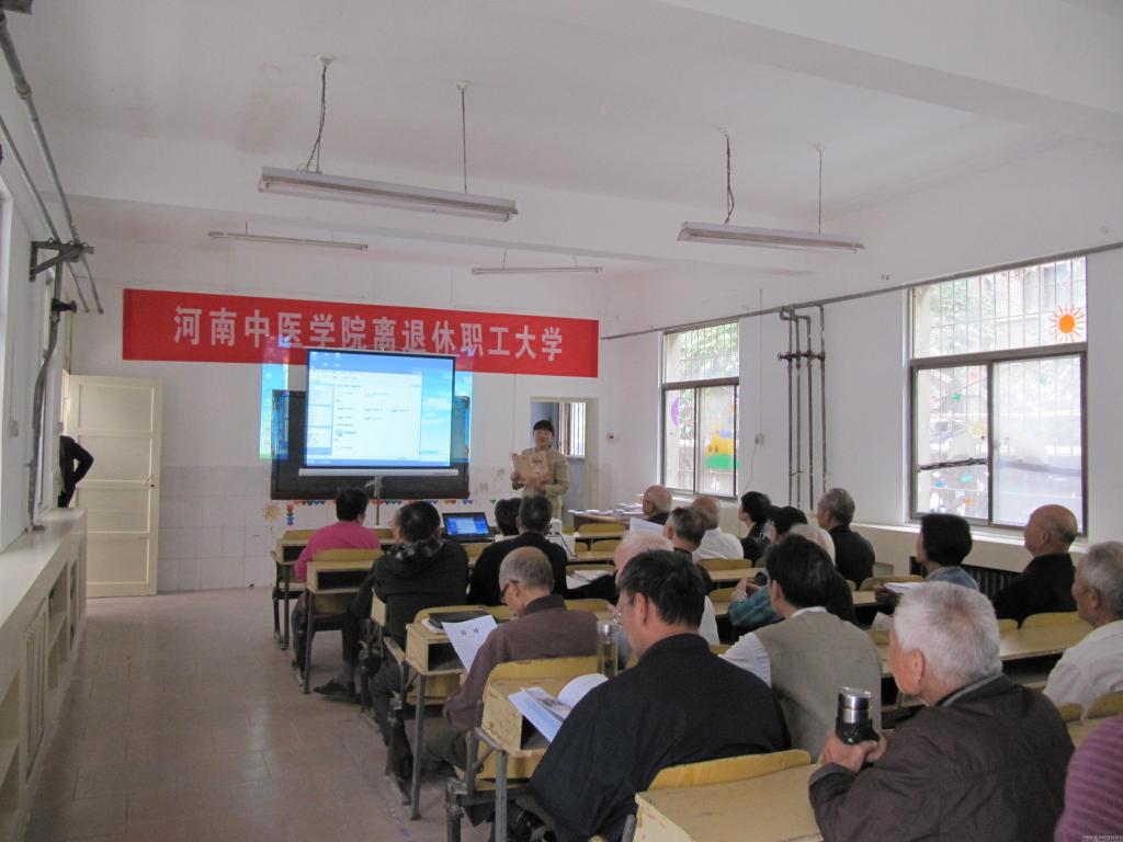 “人生易老天难老,岁岁重阳,今又重阳,不似春光,胜似春光……。”2013年10月11日下午,伴着秋日艳阳,丹桂飘香的美好日子,河南中医学院离退休职工大学正式开学,这是继离退休职工参观郑州师范学院、俯瞰黄河母亲河活动之后,欢度重阳节系列活动的又一项活动,也是学校领导又一次陪伴老同志欢度节日。