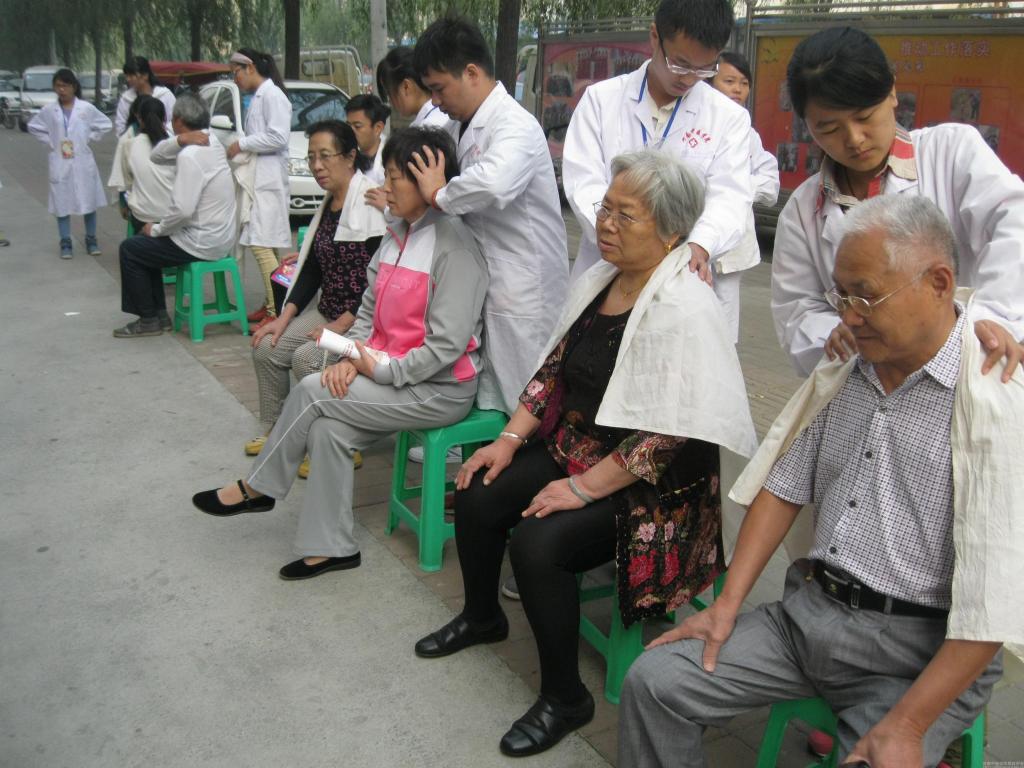 上午8时,志愿者到达宏图街社区,将血压计、按摩布、棉球、药品、桌椅等一一布置归位,为义诊活动做好充分准备。闻讯赶来的老人们在志愿者的热心指导下有序排起了长队等候诊断。医生详细询问老人们的病史,帮老人全面检查身体,为他们进行诊断,开出处方,还免费赠送老人《美食巧吃更健康》、《合理运动身体棒》等养生手册,希望他们注重养生,关注身体健康。同时,志愿者们利用所学知识认真地为老人量血压、测血糖,并依据血糖、血压的高低为他们量身定制了特定食谱,并为他们提供了米兰(中国)特色的刮痧、针灸、推拿、按摩等服务。在此期间,志愿者给他们讲述一些常用的秋季养生知识及日常健康保健方法等,还热情询问老人的日常生活情况,陪他们聊天,给他们表演节目,周到的服务、愉快的交流拉近了志愿者与社区老人的距离,义诊现场其乐融融。