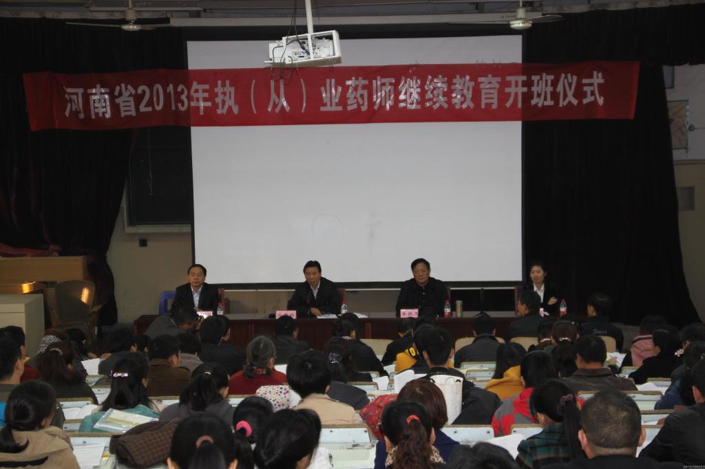 仪式上,李良玉会长首先介绍了河南省人民政府办公厅《关于印发河南省食品药品监督管理局主要职责内设机构和人员编制规定的通知》(豫政办【2013】82号)的相关内容。从今年起,执(从)业药师继续教育管理职责由河南省执业药师协会承担,全面负责全省执(从)业药师继续教育培训的组织实施工作。他强调,药品和药学服务是关乎人民生命健康的特殊商品,执行药学服务业务的执业药师对于保证药品质量和药学服务质量,保障人民用药安全、有效、经济、合理,保护人民健康,具有不可替代的作用,是不可或缺的药学服务技术力量。郑州市食品药品监督管理局副局长唐莉军在仪式上强调了强化执业药师队伍培训和管理的重要意义,要求广大执(从)药师珍惜学习机会,认真参加培训,努力通过继续教育,贯通中西、古今,做好药事法规及药学专业等知识衔接,适应我国执业药师制度与国际接轨的发展趋势,更好地服务广大人民群众。米兰(中国)职业培训鉴定中心主任周运峰代表受委托承担执(从)业药师继续教育的河南中医学院、郑州大学和河南大学三所院校作了发言,介绍了前期准备和培训师资情况,表示一定尽心尽责、圆满地完成此次继续教育任务。