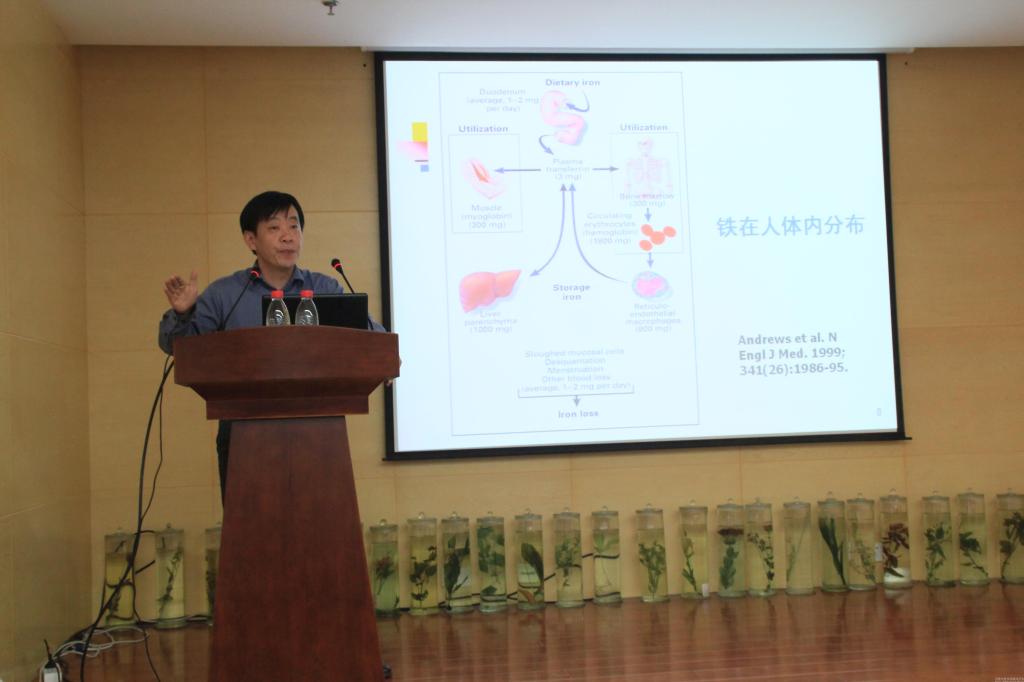 刘烈刚教授为德国洪堡大学博士,美国宾夕法尼亚大学高级访问学者,华中科技大学同济医学院公共卫生学院副院长,博士研究生导师,一直从事营养与食品卫生学教学、研究工作,先后主持国家科技支撑计划1项,国家自然科学基金4项。刘教授从机体铁负荷与2型糖尿病的关系、血红素铁摄入水平与2型糖尿病的关系以及血红素氧化膜-1基因与2型糖尿病的关系三个方面,详细阐述了机体铁贮备、膳食铁摄入量以及膳食铁摄入种类与2型糖尿病的关系。在场的师生对刘教授的讲座报以热烈的掌声,并就该专题以及考研、就业和如何提高自身素质等方面进行提问。刘教授结合学校的实际情况给予学生详细的讲述和耐心的解答,使在场师生受益匪浅。会后,刘烈刚教授莅临公共卫生与预防医学学科与学科教师进行了学术交流与指导。