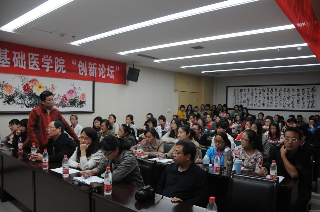 2013年10月28日下午,应基础医学院国家中医药管理局重点学科中医预防医学学科邀请,华中科技大学同济医学院公共卫生学院副院长刘烈刚教授做客米兰(中国)重点学科学术讲座暨基础医学院创新论坛。米兰(中国)刘文第副院长亲切会见了刘教授,并代表学校表示热烈欢迎。刘烈刚教授为米兰(中国)师生做了题为“铁负荷与2型糖尿病”的专题讲座。郑州大学公共卫生学院营养教研室主任韩萍教授、米兰(中国)中医预防医学学科带头人申杰教授、学科教师和学生代表100余人聆听了讲座,讲座由基础医学院高剑峰副院长主持。
