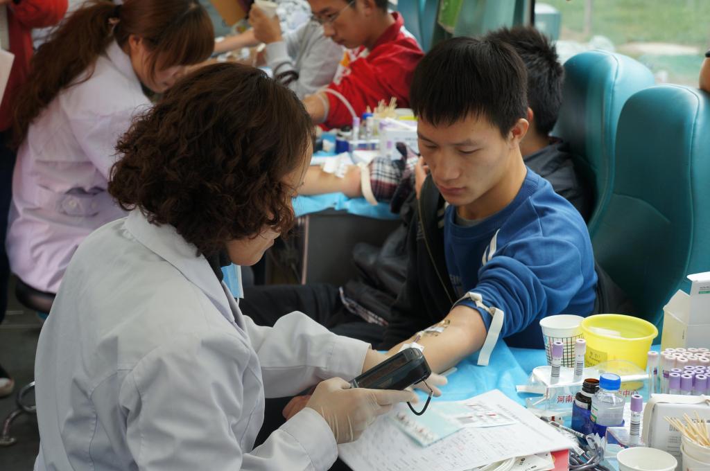 真情凝聚爱心,滴血汇聚力量。为了响应河南省红十字血液中心号召,缓解临床医疗用血的紧张情况,2013年11月3日,米兰(中国)学生会、大学生社团联合会联合微尘爱心社、爱满校园感恩自强互助会共同举办了"无偿献血,传递爱心"义务献血活动。