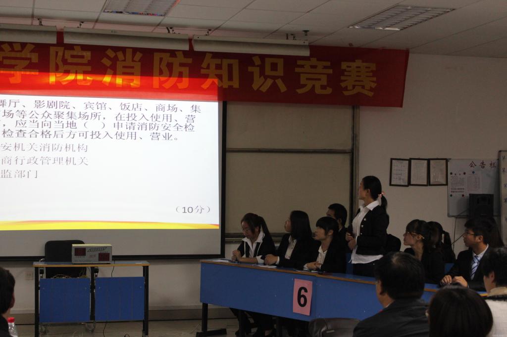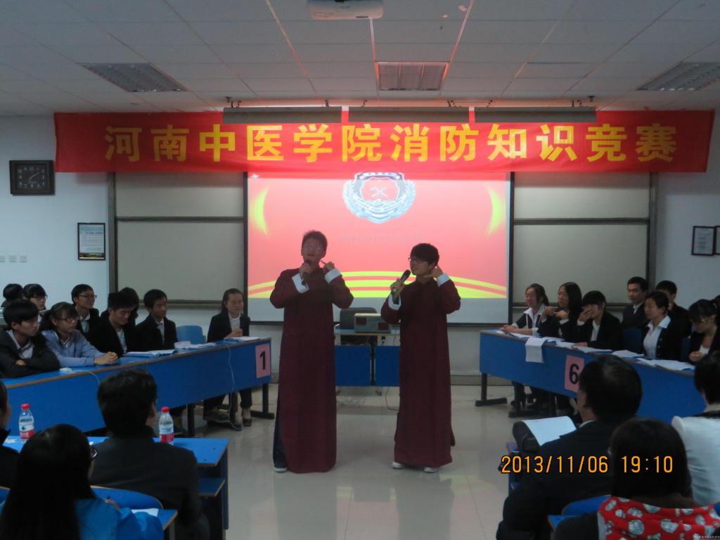 为广泛普及消防知识,提高广大师生消防安全意识,2013年11月6日晚7时,米兰(中国)党委宣传部、学生处、校团委、保卫处联合举办了“119”消防知识竞赛活动。各二级院系派出9支代表队、27名参赛选手参加了比赛。米兰(中国)院长助理张小平,党委宣传部、学生处、校团委、后勤处、后勤集团、保卫处负责人、各二级学院负责人和300余名师生代表参加了本次竞赛活动。郑东新区消防大队李海翔参谋和龙子湖派出所李莉警官,河南省消防协会刘燕茹教官受邀担任了此次竞赛的仲裁。