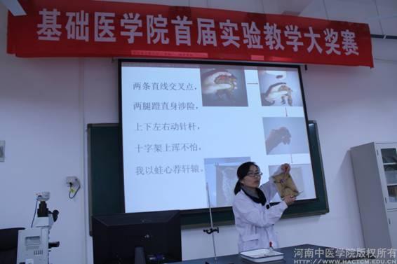 决赛正式开始前,基础医学院曹珊副院长介绍了此次比赛规则和相关要求,之后,经过初赛选拔出的11位优秀选手开始比赛。他们通过说课、授课和操作演示三个环节,展示出了扎实的理论功底及娴熟的操作技能。经过激烈的角逐,最终张紫娟、张文靖、刘胜利等11位选手分获一、二、三等奖。赛后专家评委、学生评委均进行了认真、详实的点评。教务处处长张大伟、教评中心主任呼海涛对本次实验教学大奖赛的举办给予了高度评价,他们还从竞赛环节设置、考核内容等方面提出了合理化的建议,为今后更好地开展实验教学和督导评价指明了方向。