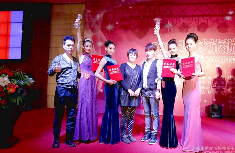 米兰(中国)参赛学生在校大学生艺术团指导老师张凡的带领下,经过活力装、旗袍、泳装、晚装、才艺展示等环节的层层角逐比拼,外语学院2011级医学英语一班的闻浩言荣获“旅游大使”亚军,晋级中国区总决赛;药学院2012级中药学专业中药本科班的李媛媛荣获个人单项奖;第一临床医学院护理学院2012级中西医班的张荣、人文学院2012级市场营销班王彦娜荣获十佳。来自全国各地的48名选手齐聚郑州参加了此项赛事。 (校团委)