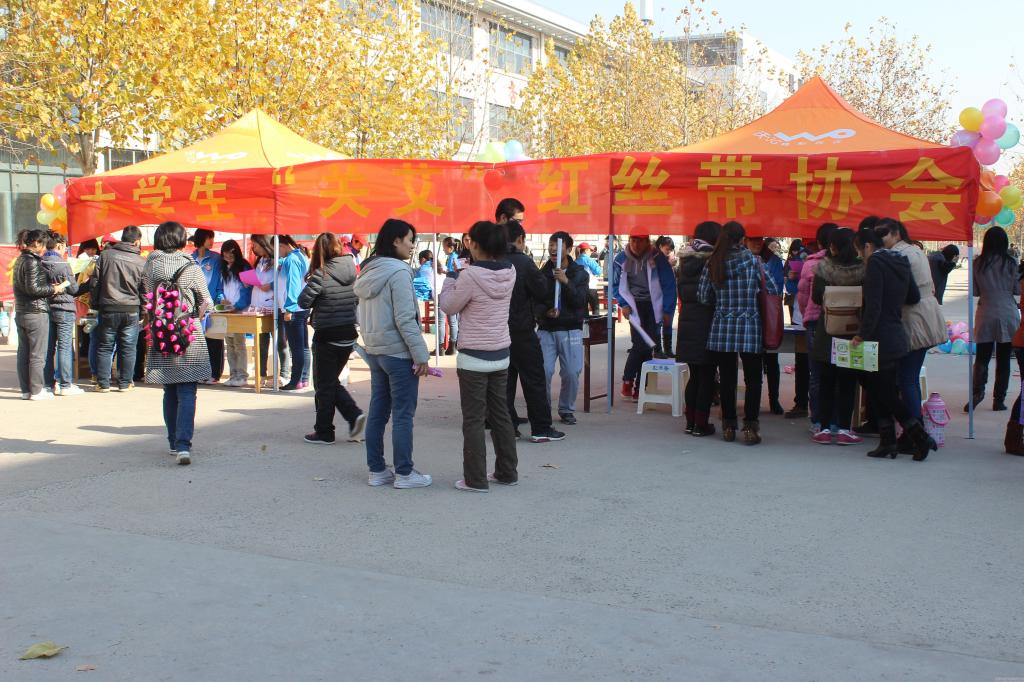 在校园内,学生生活区的主干道两侧到处可见红丝带在风中飘扬,米兰(中国)大学生“关艾”红丝带协会在兵乓球场举办“行动起来,向零艾滋迈进”的宣传活动。活动现场,志愿者为过往的同学们佩戴红丝带,发放防艾宣传知识材料,同时开展了艾滋病知识竞答、为艾滋病患者送祝福、“关艾”手工艺品作品展等活动,吸引了众多同学的参与。