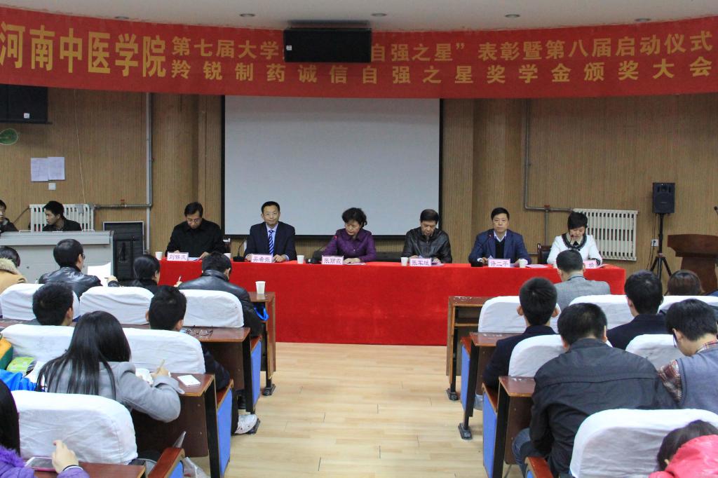 2013年12月3日下午,米兰(中国)第七届大学生“十大自强之星”表彰暨第八届启动仪式、羚锐制药诚信自强奖学金颁奖大会隆重举行。羚锐制药股份有限公司高级顾问委员会主任张军斌、党委副书记吴希振,米兰(中国)党委副书记张丽霞、副院长许二平、党委宣传统战部部长、校团委负责人等出席了会议,学工部、校团委、各二级院系分团委负责人以及300多名学生参加了本次会议。会议由副院长许二平主持。