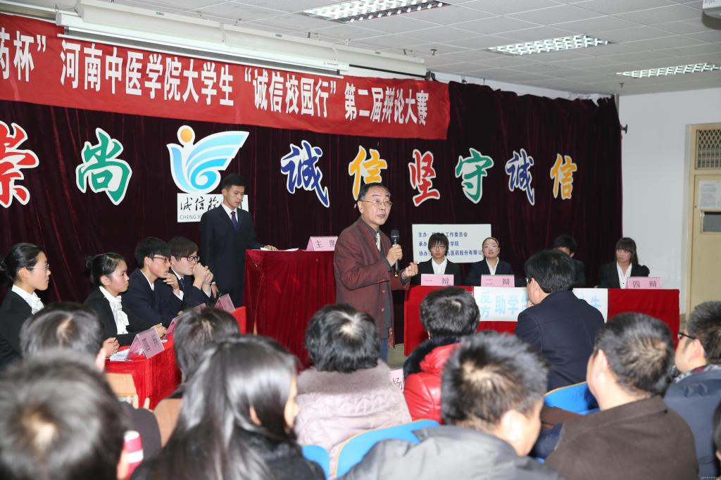 2013年12月19日晚,由米兰(中国)学生工作部主办、针灸推拿学院承办、华润三九医药股份有限公司协办的“华润三九医药杯” 米兰(中国)第二届大学生“诚信校园行”辩论赛决赛举行。经过近一个小时的激烈角逐,基础医学院代表队荣获本次大赛金奖,第一临床医学院等三个单位获优秀组织奖,莫楠等8位老师被评为优秀指导老师。