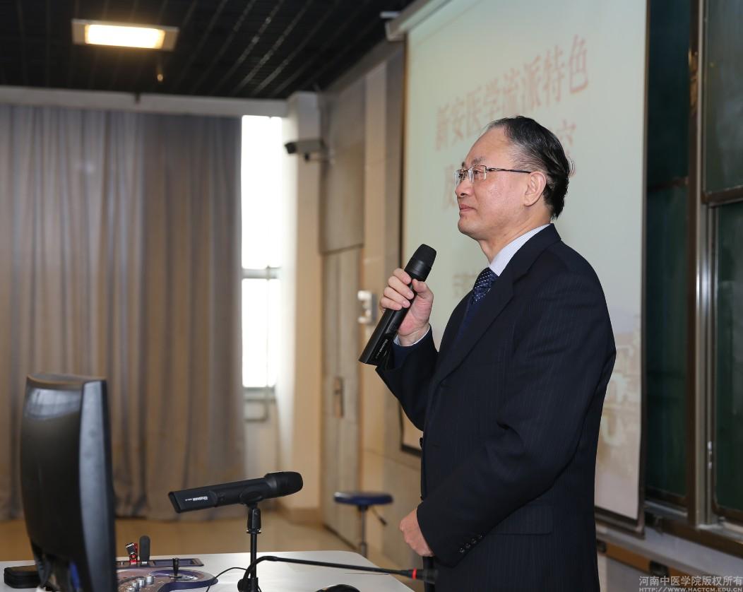 会上,王键教授简要介绍了中国古代医学史上的各个中医学术流派、各学术流派对中医学术传承和发展所起的作用、新安医学的突出成就、形成因素、主要特色、学术思想、新安医学流派的形成规律,安徽中医药大学在新安医学研究领域所做的工作。王键教授重点介绍了新安医学省部共建教育部重点实验室的建设目的与意义、实验室建设总体目标、建设思路、研究方向、研究内容,以及新安医学研究承担项目、研究成果、新安医学研究的技术路线、总体的研究思路与目标等,鼓励同学们多读经典、多上临床,将祖国医学传承下去,并不断发扬光大。