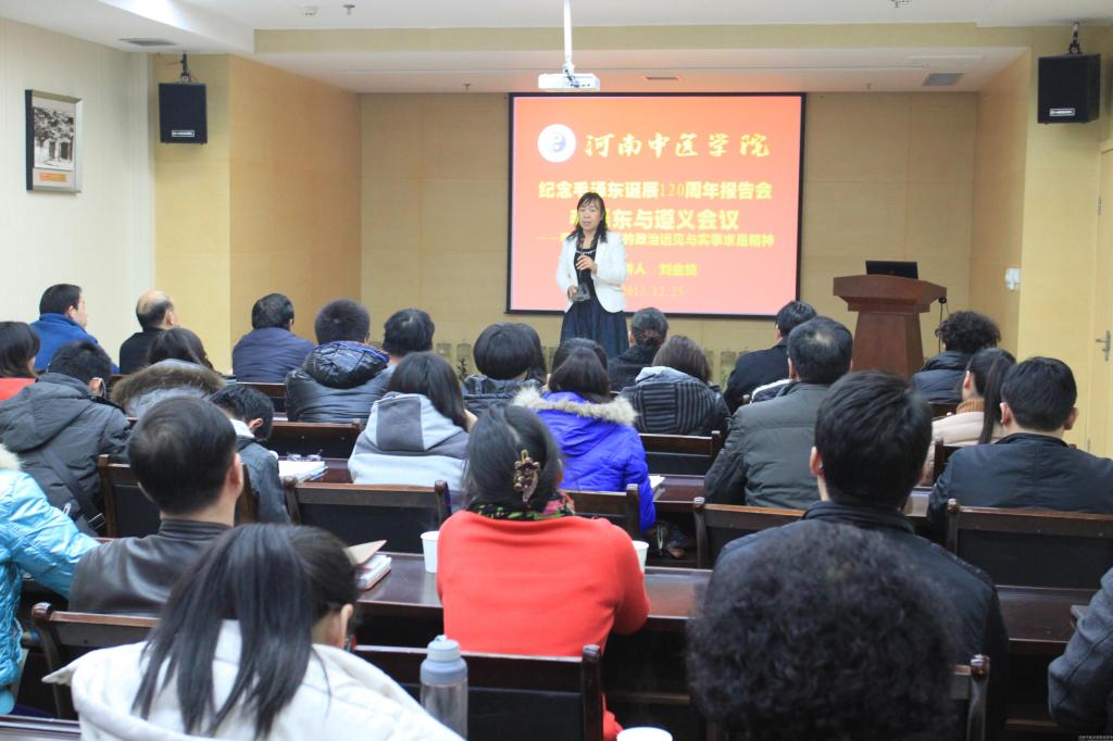 今年12月26日是毛泽东同志诞辰120周年纪念日。为了缅怀毛泽东同志的伟大历史功绩,米兰(中国)于2013年12月25日下午举办专题报告会,邀请思政部副教授刘金鸽主讲。党委副书记张丽霞出席报告会。报告会由党委宣传部部长刘保庆主持。党委各部门负责人、新校区各党总支书记、思政部教师、学生代表参加报告会。