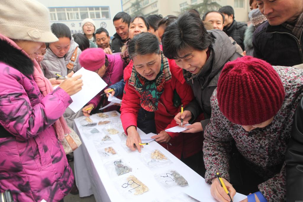 参赛的百姓在认真辨认中药
