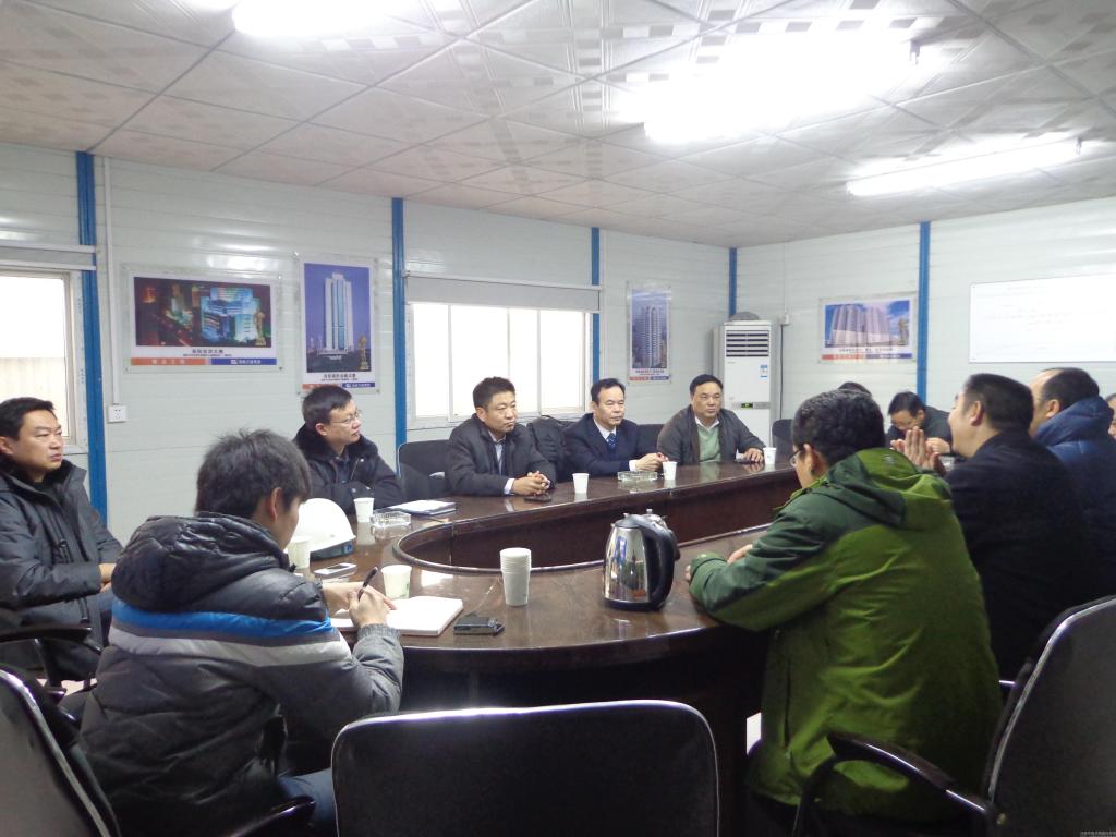 付强副院长一行穿过布满脚手架的楼道,来到图书馆顶层正在进行混凝土浇筑的作业现场,仔细查看施工作业情况,询问工作中需要解决的问题,并亲切慰问了正在寒风中紧张忙碌的工人。随后,付强副院长一行来到会议室,认真听取了参建单位关于工程建设进展情况的汇报。副总经理雷通州对学院领导的关心支持表示感谢,他讲到,目前工程各项工作进展顺利,工程款到位及时,无农民工工资拖欠情况,确保完成年前主体结顶的工作目标。总监理王晨霞表示将继续做好节点施工的材料、安全把关工作,确保工程质量、工人安全。