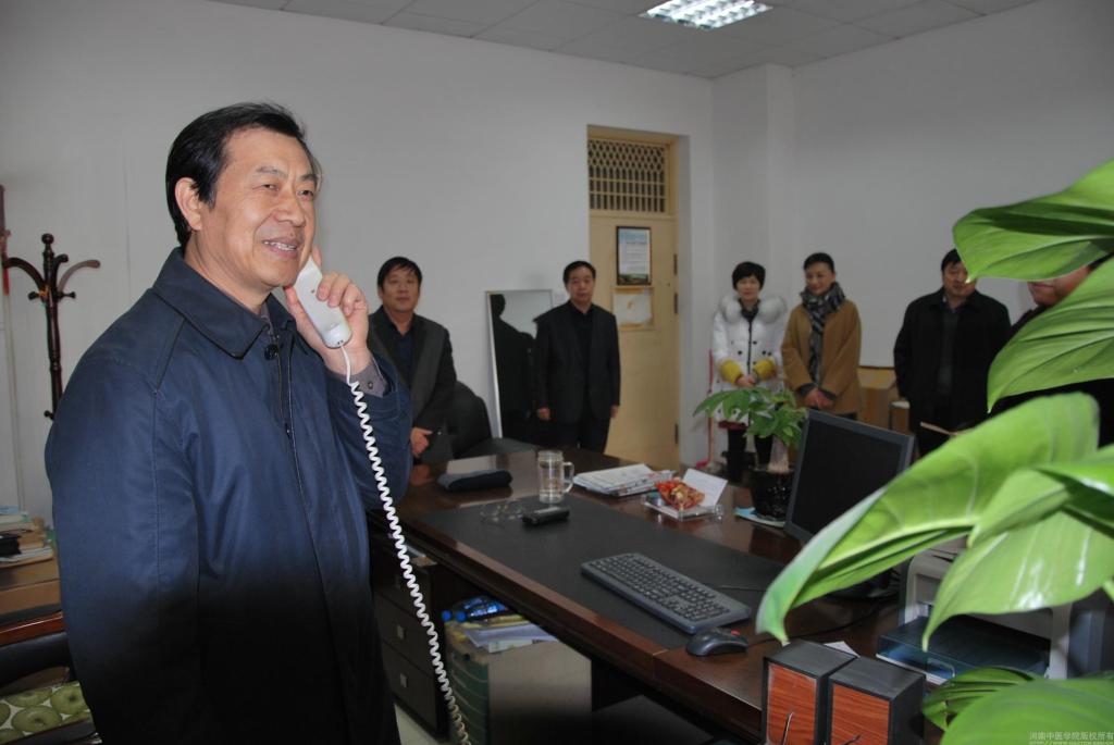 党委副书记、工会主席段荣章和药学院一位受助老师通电话