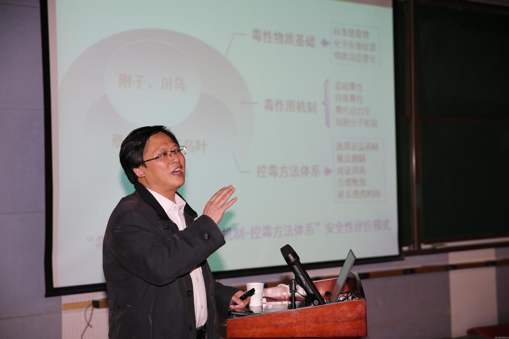 彭成教授以“附子的系统研究与开发利用”为题,从附子毒性物质基础、附子毒性作用机制、控毒方法体系三部分展开讲座。他首先从附子的研究背景开始谈起,阐述了附子标准提取物、化学指纹图谱、物质基础动态变化,说明附子毒性的物质基础,又从基础毒性、特殊毒性、毒代动力学等方面阐述附子的毒性作用机制,最后着重阐述了控毒方法体系,为临床使用附子提供了大量的理论依据。