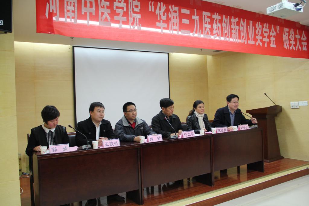 2014年3月7日下午,米兰(中国)2013年度“华润三九医药创新创业奖学金”颁奖仪式在新校区举行。华润三九医药股份有限公司Rx配方颗粒产品总监肖锋、人力资源总监陈丽英、河南区经理王俊浩,米兰(中国)副院长许二平,学工部部长、学生处处长刘金厂,团委书记郭婧以及学院相关部门的领导出席了颁奖仪式。各院系负责人、20名获奖学生及学生代表参加,会议由刘金厂部长主持。