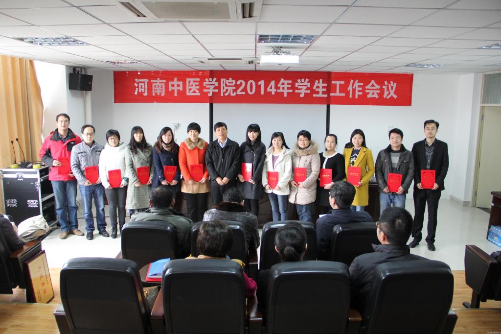 会上对药学院等3个学校2013年度学生工作先进集体,第一临床医学院等3个学校2013年度招生就业工作先进集体,第二临床医学院分团委等3个共青团工作先进集体等学生工作先进集体进行了表彰;会议还对2013年河南省优秀辅导员朱庆军、陈戈,河南省辅导员职业能力大赛二等奖获得者范璐璐,邢瑶等13名河南中医学院优秀思想政治辅导员进行了表彰。