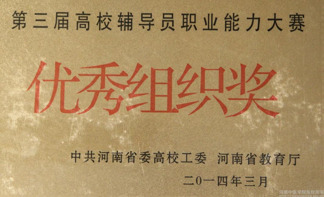 2014年3月12日至14日,河南省第三届高校辅导员职业能力大赛在新乡举行。本次大赛由中共河南省委高校工委、河南省教育厅主办,河南师范大学承办,全省93所高校共96名一线辅导员参加了本次比赛,各高校500余名代表观摩了大赛。代表米兰(中国)参赛的第二临床医学院辅导员邢瑶老师经过激烈角逐获得三等奖,同时米兰(中国)和郑州大学、河南大学等8所院校获得了优秀组织奖。