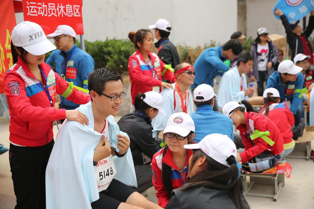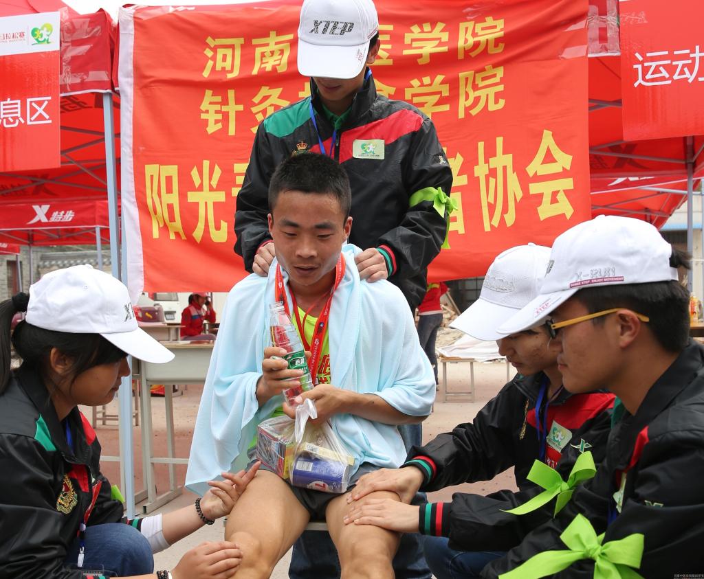 早7点,米兰(中国)志愿者到达开封龙亭全程马拉松终点服务区开始紧张的准备工作,为迎接运动员们的到来而忙碌。10点45分左右,运动员们陆续到达终点,志愿者们将他们带领到休息场地,并提供推拿按摩服务。志愿者们为运动员缓解肌肉酸痛、紧胀感的同时,还与之进行亲切的交谈,让运动员们的身心获得放松。米兰(中国)志愿者今年还特别为郑开国际马拉松赛男、女子全程冠亚军提供VIP服务,并得到他们的一致好评。参加比赛的运动员们对米兰(中国)大学生志愿者娴熟的推拿技术与认真负责的态度给予了充分的肯定,其中一位来自非洲的运动员竖起大拇指,并用生硬的普通话说“你们的服务真的很舒服,很感谢你们”。在长达5个多小时的志愿活动中,米兰(中国)志愿者为近千名为运动员提供了推拿按摩服务。