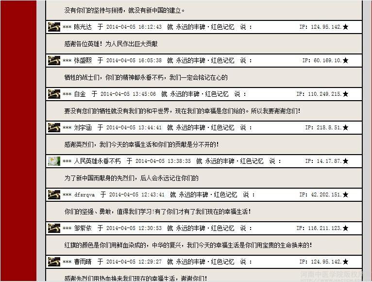 “桃花红雨英雄血,碧海丹霞志士心”,历史会牢记他们的功勋,同学们也会牢记他们为民族的独立和解放、国家的富强、人民的幸福所作出的贡献。网上祭奠英烈的方式是时代发展的体现,是一种与时俱进的文明祭扫方式,它可以使人们跨越时空的限制,更加自由、更加广泛地去纪念先烈,也为弘扬烈士精神、加强爱国主义教育开辟了新的宣教平台。