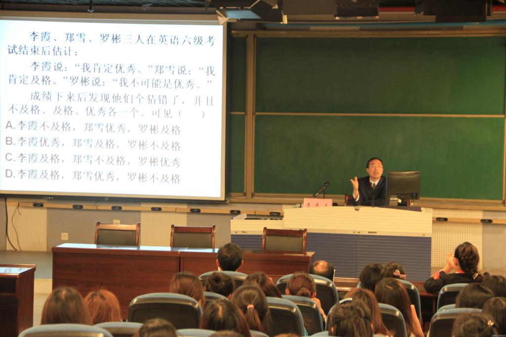 为了服务应试学生,提高选调生报考成功率,由学校组织部人事处、招生就业处主办的《选调生考试指导讲座》于2014年4月10日晚在米兰(中国)新校区教学实验大楼A634举行。讲座特邀请河南省委党校公共管理教研部主任李民昌教授主讲。2014年报考选调生的同学、有报考公务员意向的毕业生以及在校生近300人接受了培训指导,讲座由学校组织部长人事处长徐江雁主持,招生就业处李东阳处长及有关负责老师全程参加了讲座。