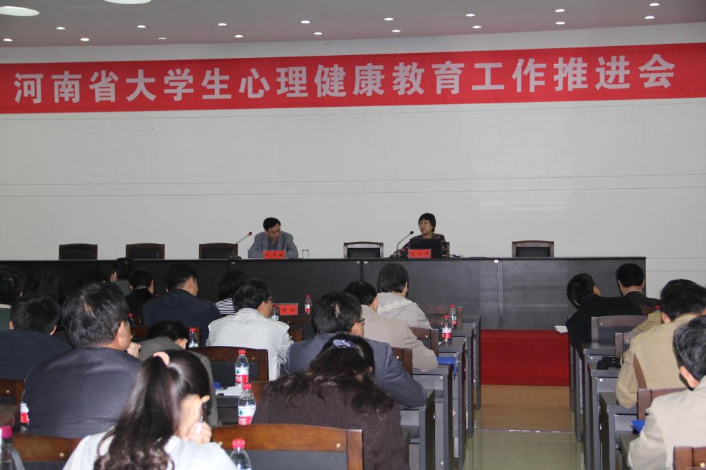 为深化心理健康教育工作,推动心理健康教育工作的规范化和标准化建设,2014年4月22日-23日,由中共河南省委高校工委、河南省教育厅召开的大学生心理健康教育工作推进会在信阳师范学院召开。全省本科和高职高专共120多所学校的心理健康教育工作者参加了本次推进会。