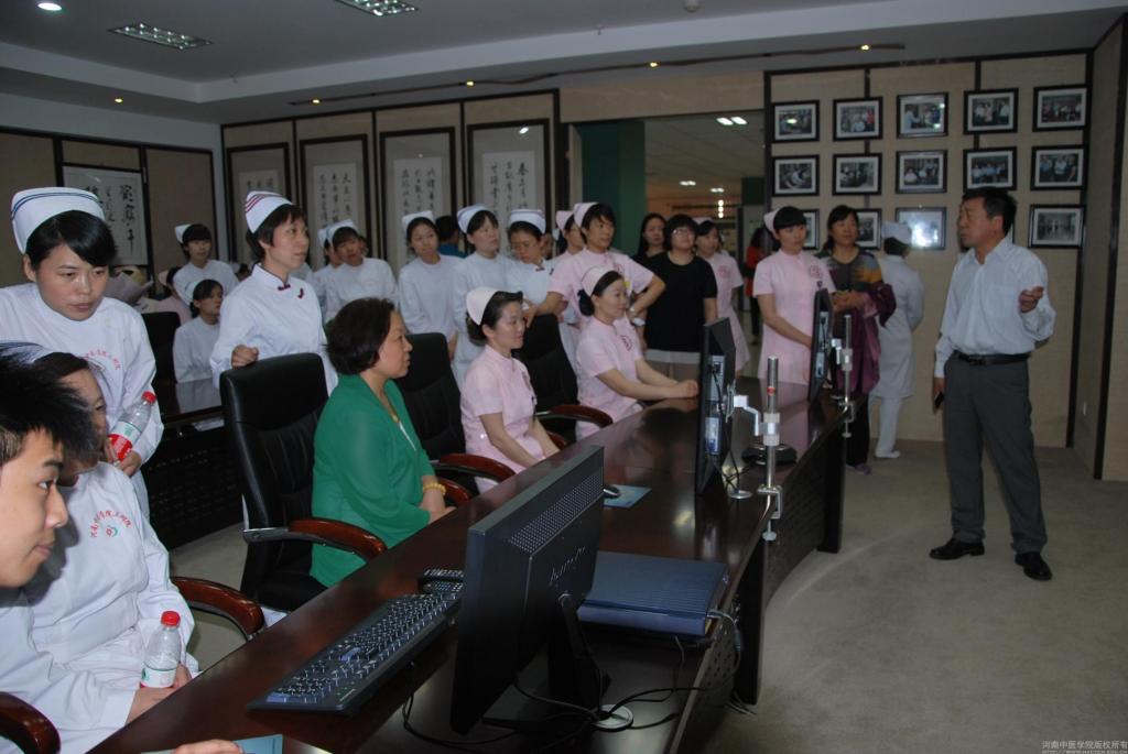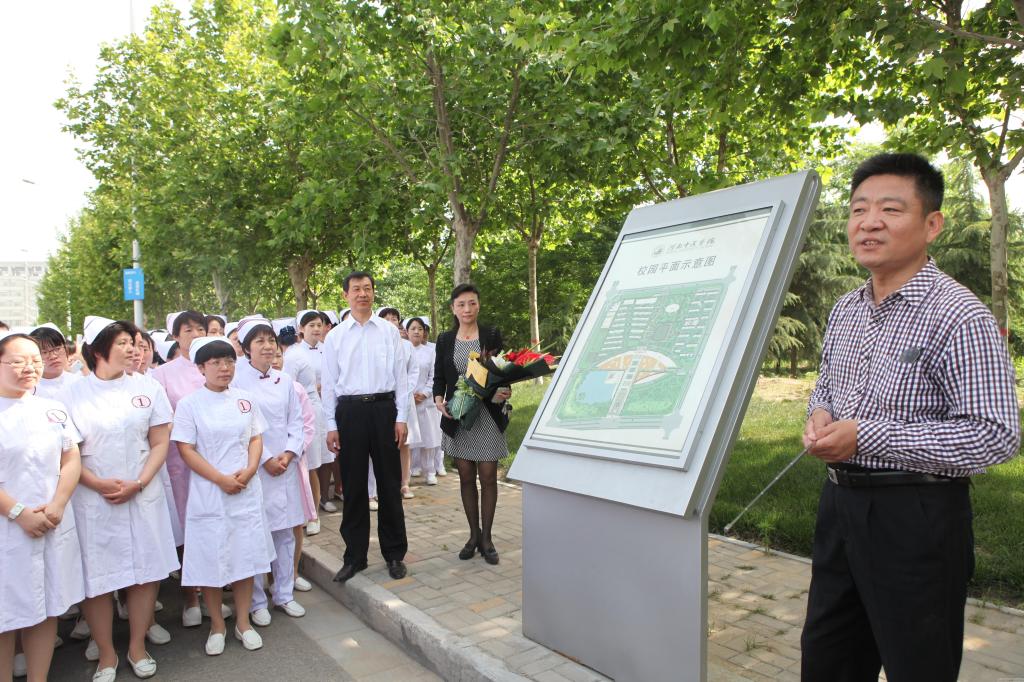 校党委副书记、工会主席段荣章首先致辞。他首先向三所附属医院的护士兄弟姐妹们祝贺节日,并肯定了护理工作的重要性和为学校发展做出的贡献,对护理人员志愿献身护理事业,担起守护生命的职责表示钦佩和敬意。他对护理战线上的兄弟姐妹提出殷切的希望,希望他们秉承先辈衣钵,继承和发展中医护理传统和优势,培养自己良好的职业道德,以及奉献、爱岗敬业精神。激情洋溢的话语流露出他对护士兄弟姐妹们的深切关怀,赢得阵阵经久不息的掌声。接着,解建新处长带领大家从大门前行参观校园,他从大门两侧的浮雕寓意切入,在行进过程中逐一介绍了校园的整体规划、园林布局、已建项目、在建项目、拟建项目和建成项目投入使用情况等。儒雅的气质、渊博的知识、专业的术语、感性的介绍和仲景广场的恢弘、天一湖的沉静、音乐喷泉的秀丽、教学楼的壮美交相辉映,无不让倾听者感受到学校发展的速度和成果,更加坚定了紧紧围绕学校发展做贡献的决心和信心。接着,工会副主席曹蕴俐和工会工作人员引导大家分批参观了教学楼里的水浸标本室、远程会诊中心和人体标本馆,信息技术学院院长张佩江亲自讲解远程会诊中心系统,风趣幽默、深入浅出的讲解将现场的气氛推向高潮。参观人体标本馆时,大家在一附院护理部主任秦元梅的倡议下向为祖国中医药事业捐献遗体的前辈们深深鞠躬致谢。两个小时的参观很快就结束了,大家都感到意犹未尽,受益匪浅。