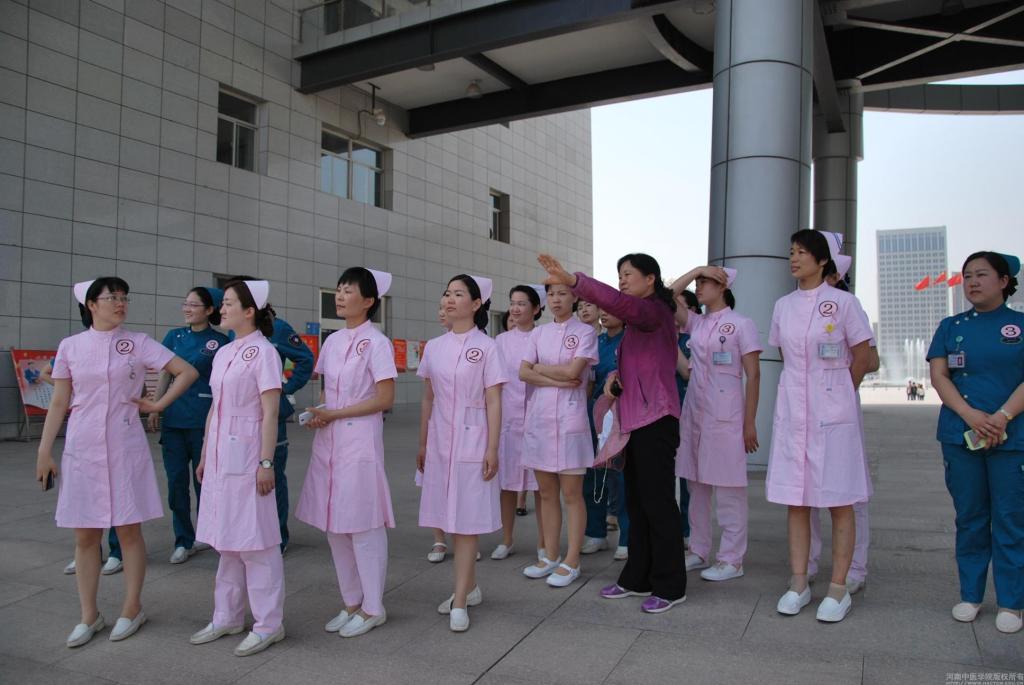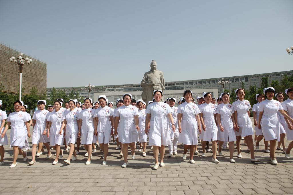 2014年5月7日上午,党委副书记、工会主席段荣章带领工会副主席曹蕴俐、基建处处长解建新及校工会全体工作人员,在学校仲景文化广场迎接三所附属医院的近200名优秀护士代表,共庆5·12护士节。二附院党委书记王海亮、一附院工会主席李涛、三附院工会主席陶洁带队参加了活动。