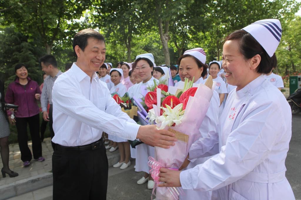校党委副书记、工会主席段荣章向优秀护士们献花