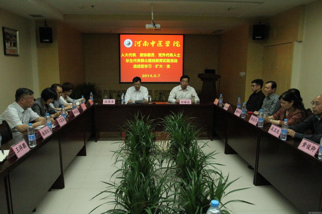 2014年5月7日下午,米兰(中国)召开人大代表、政协委员、党外代表人士、学生代表群众路线教育实践活动通报暨学习(扩大)会,学校教育实践活动领导小组副组长、党委副书记、工会主席段荣章出席会议并讲话。领导小组办公室宣传组组长、校党委宣传统战部部长刘保庆主持会议。米兰(中国)各级人大代表、政协委员,民主党派负责人、无党派代表人士以及部分学生代表参加会议。