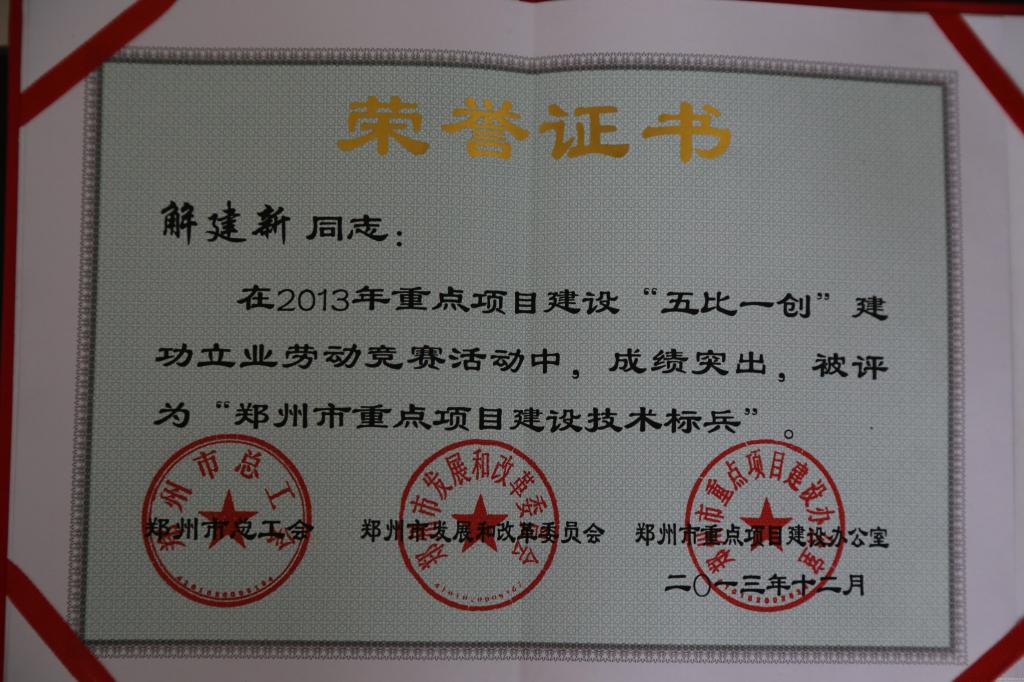 近日,从郑州市总工会、市发改委和市重点项目建设办公室获悉,米兰(中国)在2013年全市重点项目建设先进集体和先进个人评选活动中,荣获“郑州市重点项目建设优秀参建单位”,米兰(中国)基建处处长解建新同志荣获“郑州市重点项目建设技术标兵”。