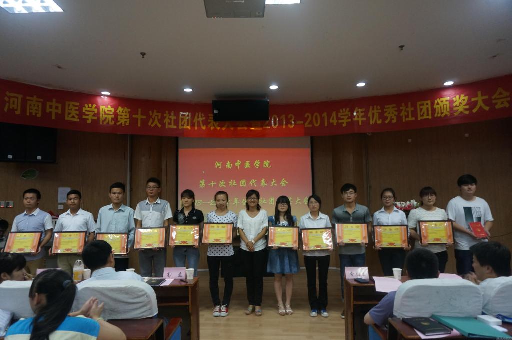 随后,大会对荣获2013-2014年度优秀学生社团、优秀社团负责人及优秀志愿服务类社团进行表彰,由校团委副书记高磊和王晓蕊分别为他们颁发了奖状和证书。