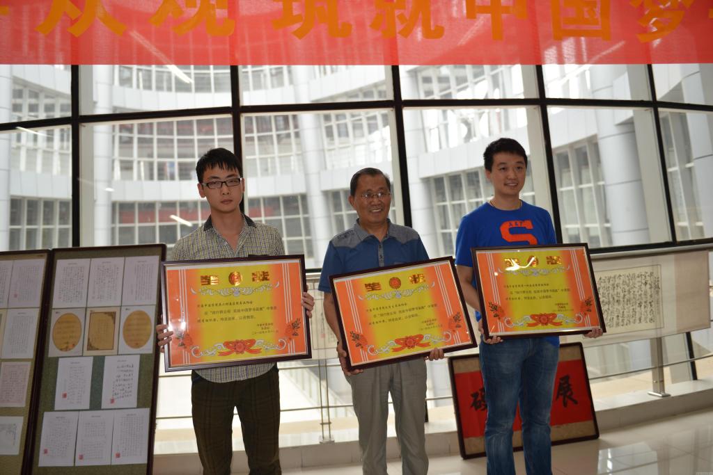 2014年6月25日上午,“践行群众观铸就中国梦”主题书画展暨颁奖仪式在教学实验楼C区六楼拉开帷幕。校党委副书记、工会主席段荣章,党委副书记张丽霞,院长助理张小平,党办院办、组织部人事处、学工部、团委、工会、离退休职工工作处等部门负责人和工作人员,校书画院院长朱忠宝、名誉院长郭学军、部分专家参加。活动由校党委副书记张丽霞主持。